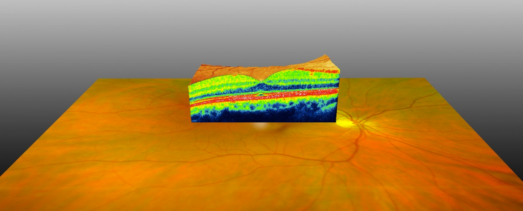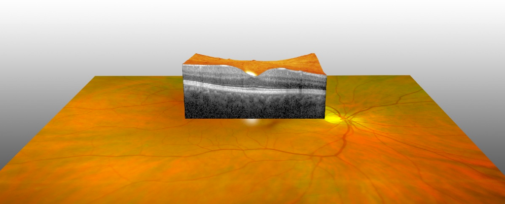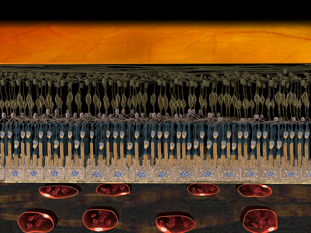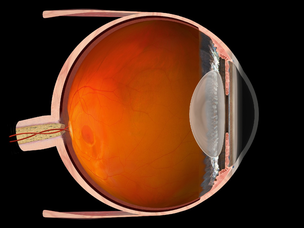 Rétine saine: modèle en 3D de coupe longitudinale d’un œil sain