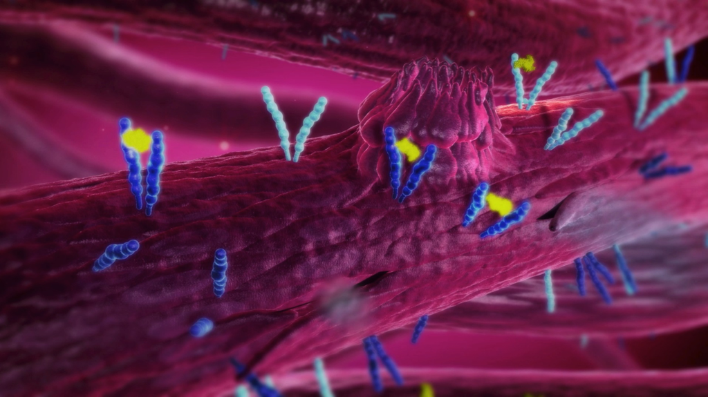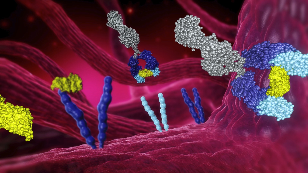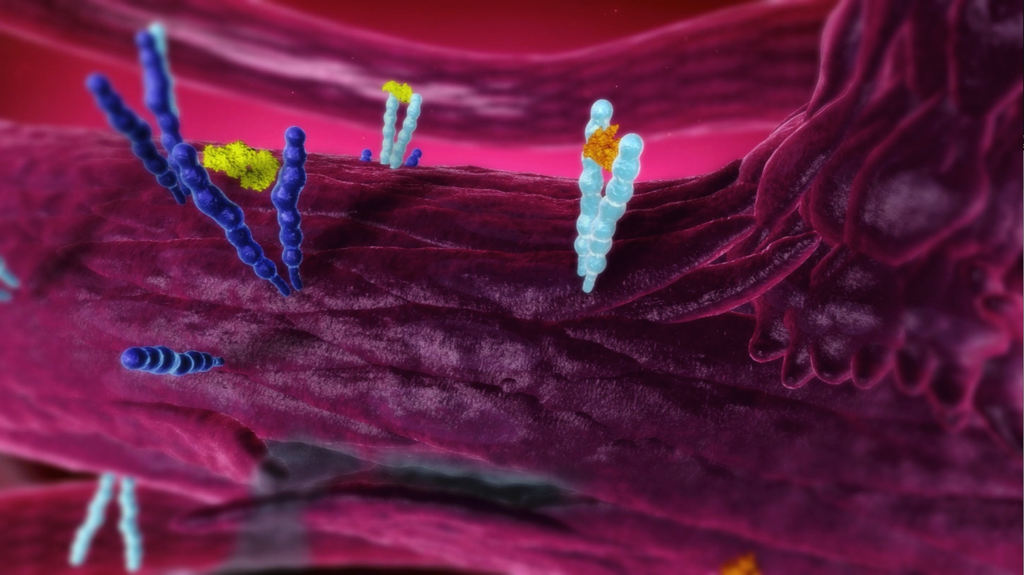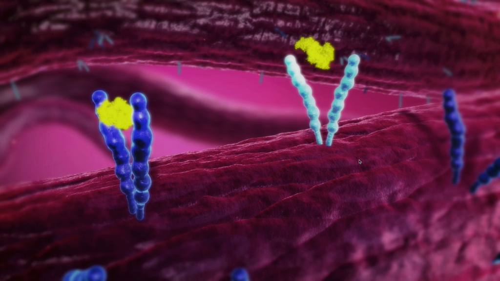 L’aflibercept (VEGF Trap-Eye) se lie à des dimères de VEGF actifs dans un rapport 1:1 strict. Le VEGF-A lié ne peut plus activer les récepteurs de la surface cellulaire.