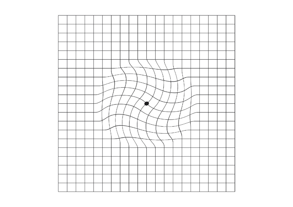 Test d’Amsler – stade tardif d’une DMLA néovasculaire avancée
